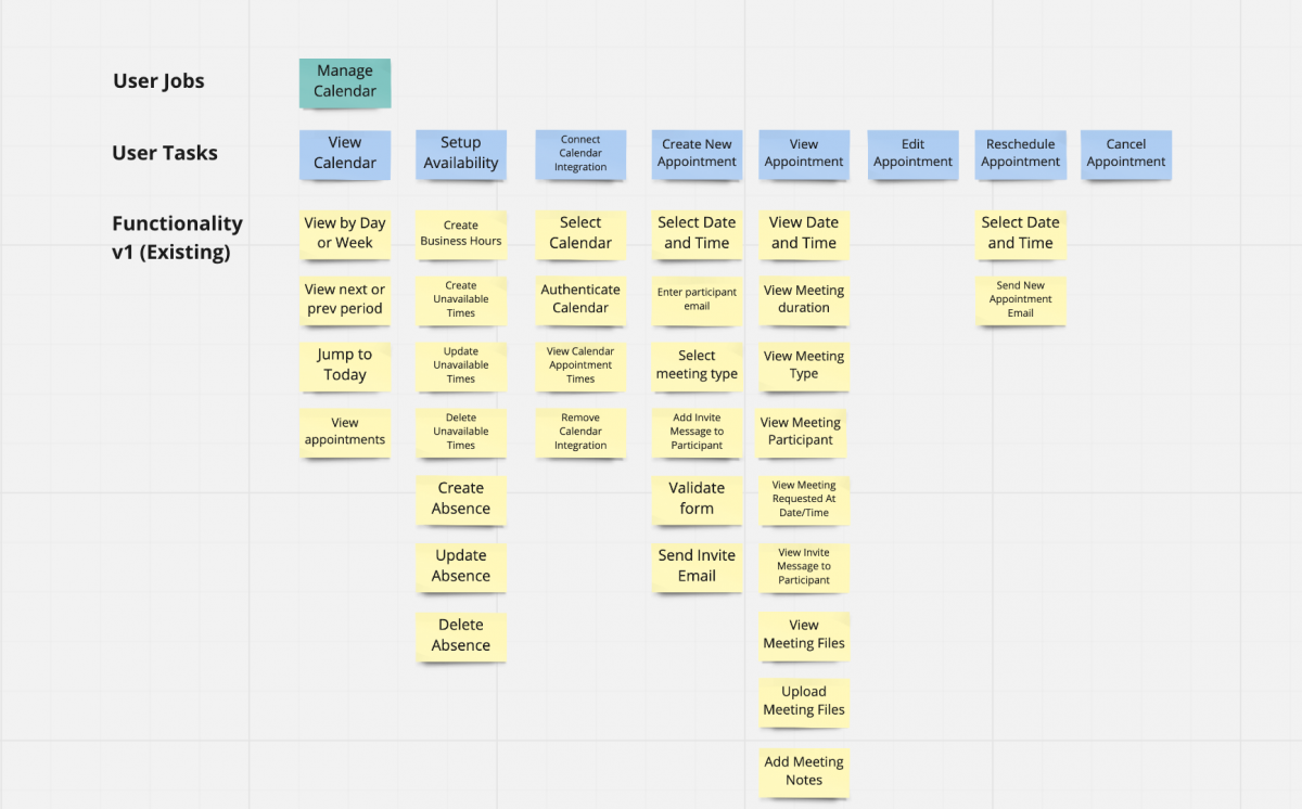 User Story Map that I created at Flexperto. We connect this with the Jobs-to-be-Done framework for visualizing improvements and changes to user stories.
