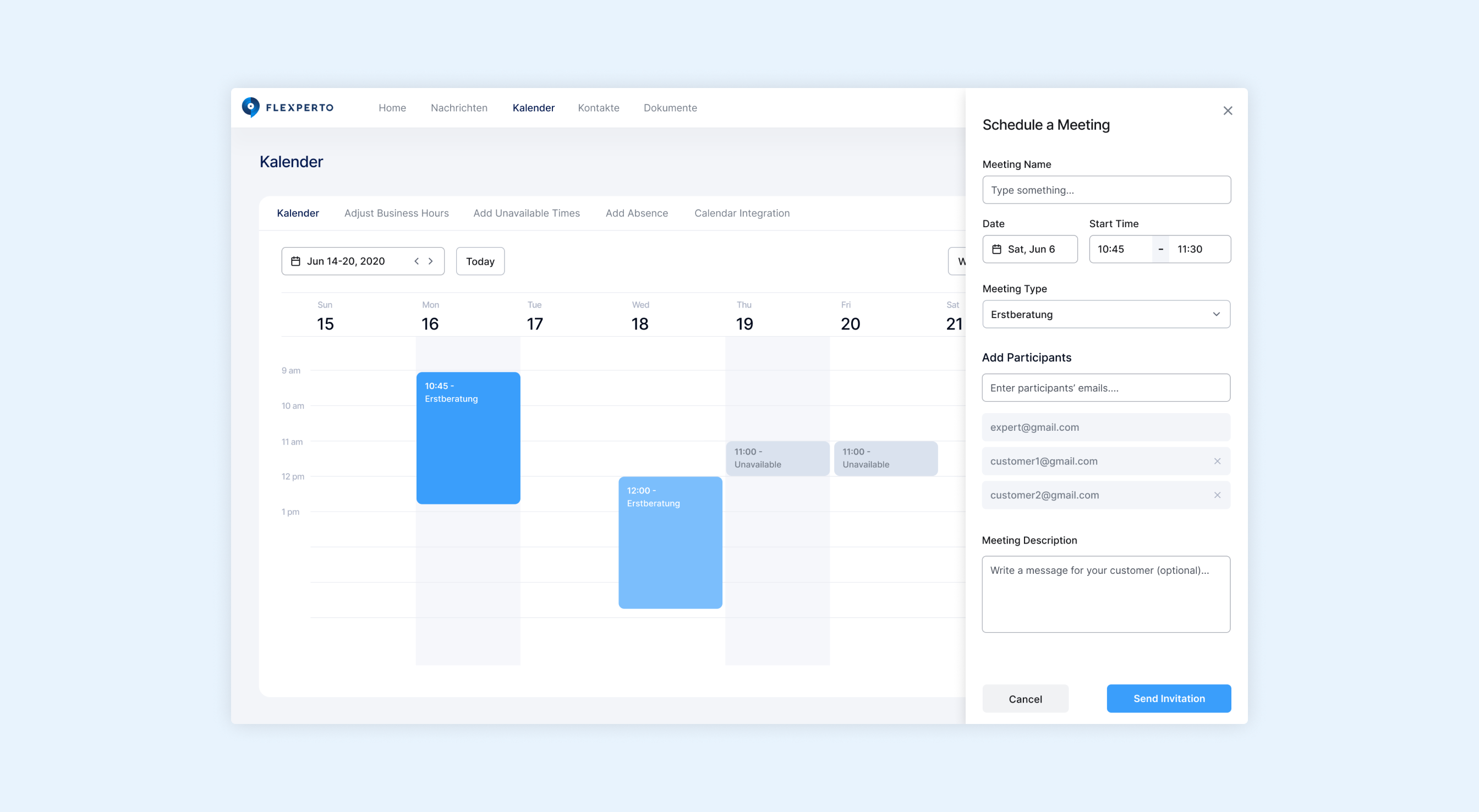 A view from Flexperto's appointment scheduling product that I designed.