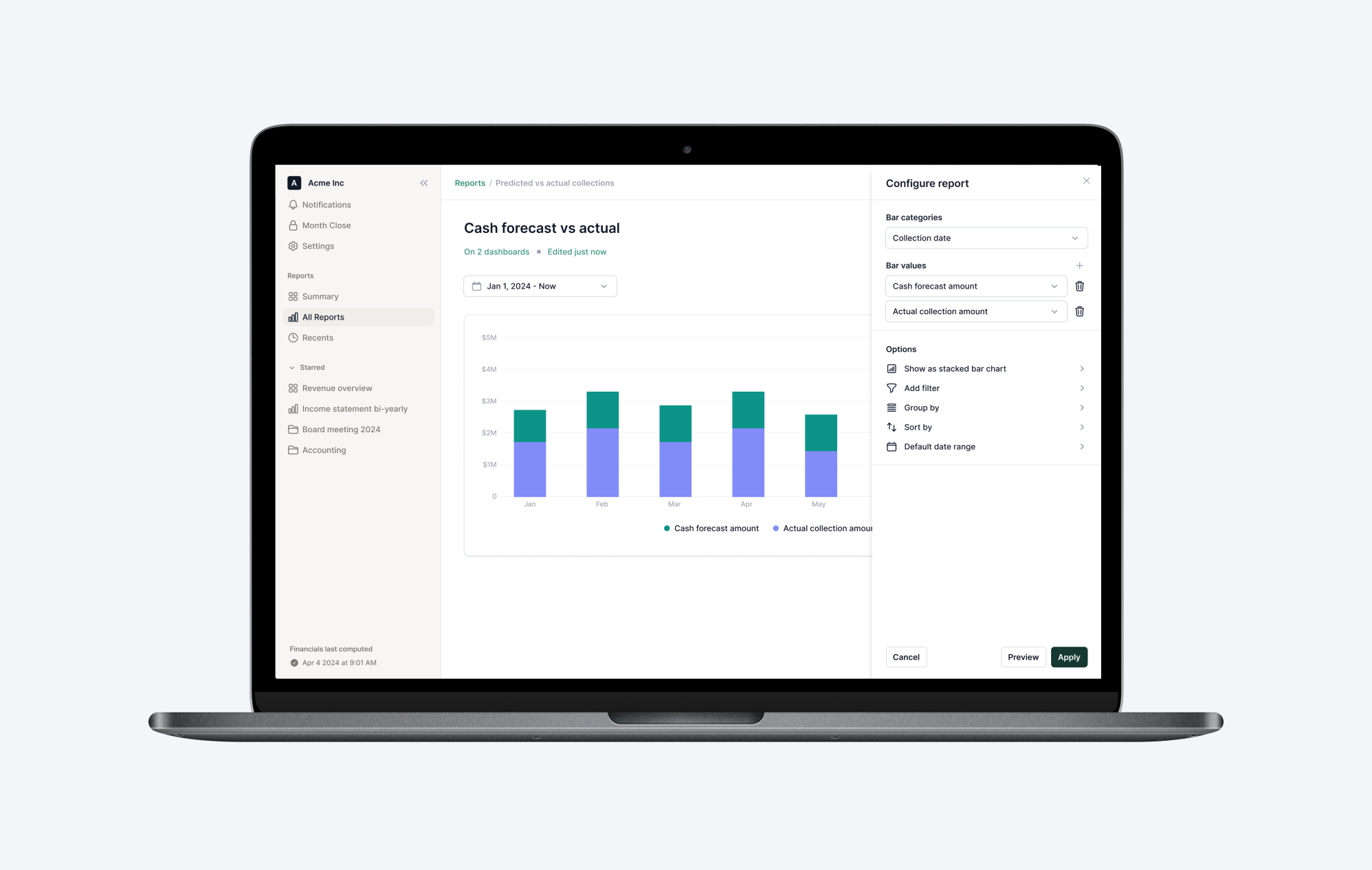 - Designing the core product for finance managers, heavily focused on the Month Close, Analytics, and Contract Management features.