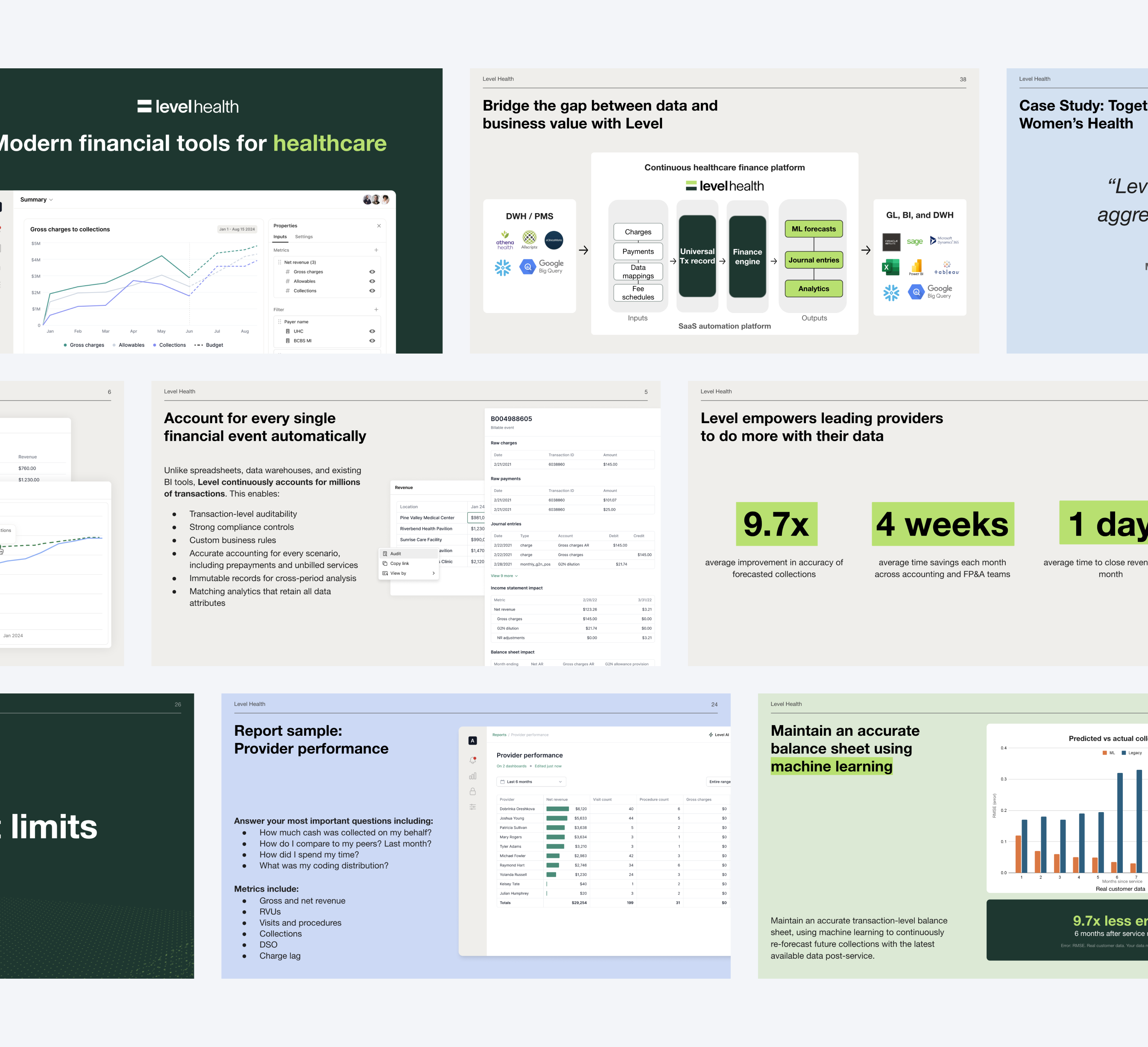 Visit the Live WebsiteHealthcare finance teams use Level to do what existing tools cannot: close revenue in a day, recognize revenue accurately at the transaction-level with machine learning, and analyze performance in real time.